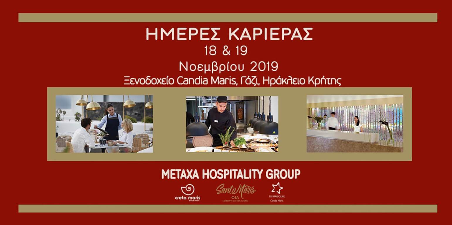 Τα ξενοδοχεία του Metaxa Hospitality Group, Creta Maris Beach Resort και TUI Magic Life Candia Maris στην Κρήτη και Santo Maris Oia Luxury Suites & Spa στη Σαντορίνη, ανοίγουν τις πόρτες τους και υποδέχονται όλους τους ενδιαφερόμενους στις Ημέρες Καριέρας.