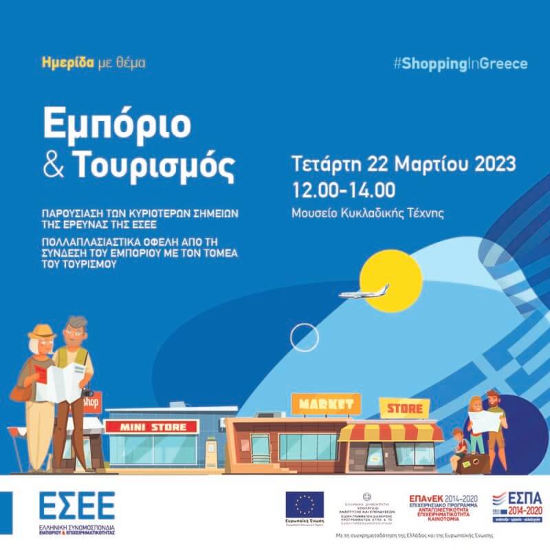 Η Ελληνική Συνομοσπονδία Εμπορίου & Επιχειρηματικότητας (ΕΣΕΕ), διοργανώνει ημερίδα με θέμα «Εμπόριο & Τουρισμός», την Τετάρτη 22 Μαρτίου στο Μουσείο Κυκλαδικής Τέχνης.