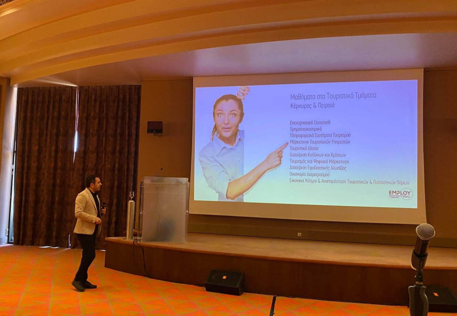 Ο ομιλητής Δρ. Χρήστος Ταουσάνης, Διδάκτωρ της Φιλοσοφικής Σχολής του Αριστοτελείου Πανεπιστημίου Θεσσαλονίκης, Συγγραφέας και Σύμβουλος Σταδιοδρομίας και ένας από τους πλέον έμπειρους ομιλητές πανευρωπαϊκά, ξεκίνησε με τις θέσεις εργασίας που έμειναν ακάλυπτες έως και 50% (στοιχεία του ΙΝΣΕΤΕ) την πρόσφατη διετία στις τουριστικές επιχειρήσεις και συγκεκριμένα σε ειδικότητες που αφορούν την τεχνική υποστήριξη, τους receptionists, τους sommelier, τα στελέχη marketing, τους guest relations managers, τα spa και βέβαια τους σερβιτόρους, τις καμαριέρες, τους barista και άλλα.