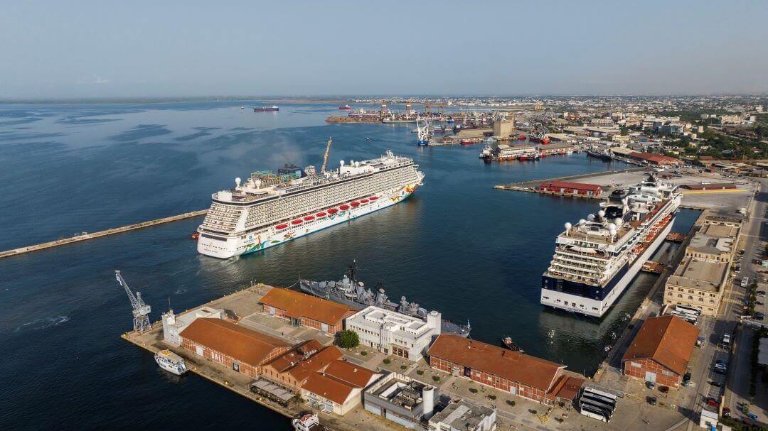 Συγκεκριμένα, το λιμάνι υποδέχτηκε ταυτόχρονα δύο κρουαζιερόπλοια, το Celebrity Infinity και το Norwegian Getaway, που είναι το μεγαλύτερο σε μήκος και χωρητικότητα επιβατών κρουαζιερόπλοιο που έχει υποδεχτεί η Θεσσαλονίκη.