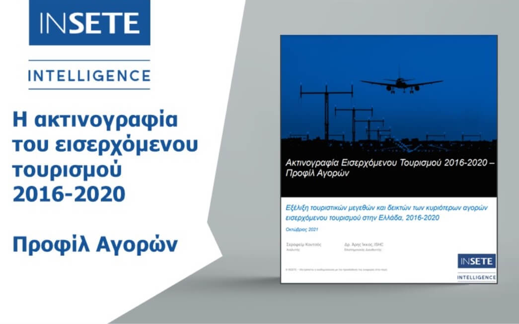 Η μελέτη του Ινστιτούτου του Συνδέσμου Ελληνικών Τουριστικών Επιχειρήσεων (ΙΝΣΕΤΕ), με τίτλο: «H ακτινογραφία του εισερχόμενου τουρισμού για την περίοδο 2016 – 2019 και 2019 – 2020 | Προφίλ 19 Aγορών»,  εστιάζει στα στοιχεία του εισερχόμενου τουρισμού συνολικά και επιμέρους για τις χώρες της ζώνης του Ευρώ, τις χώρες της ΕΕ εκτός της ζώνης του Ευρώ και τις Λοιπές Χώρες.