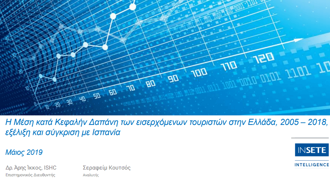 Τα παραπάνω συμπεράσματα περιλαμβάνονται στη μελέτη του Ινστιτούτου του Συνδέσμου Ελληνικών Τουριστικών Επιχειρήσεων (ΙΝΣΕΤΕ) με τίτλο: «Η Μέση κατά Κεφαλήν Δαπάνη των εισερχόμενων τουριστών στην Ελλάδα, 2005 – 2018, εξέλιξη και σύγκριση με Ισπανία».