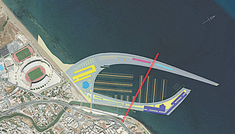 Εγκρίθηκε την Πέμπτη 21 Δεκεμβρίου κατά πλειοψηφία από το Δημοτικό Συμβούλιο Ηρακλείου, το σχέδιο για τη δημιουργία μαρίνας 1.000 σκαφών αναψυχής μπροστά από το Παγκρήτιο Στάδιο (φωτορεαλιστική απεικόνιση).
