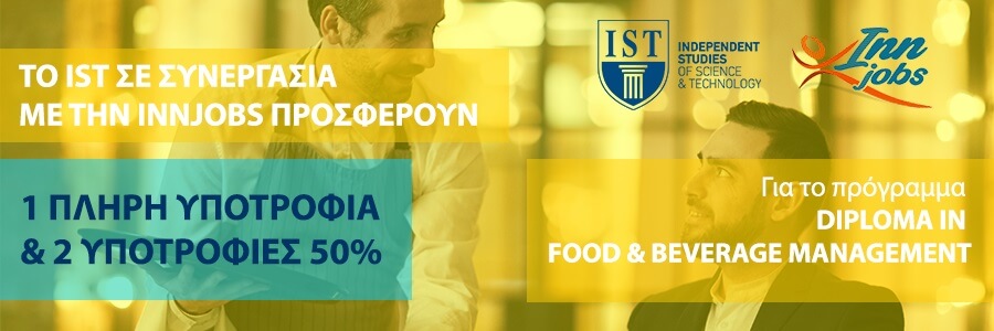 IST & Innjobs: Τρεις υποτροφίες για Diploma in Food & Beverage Management