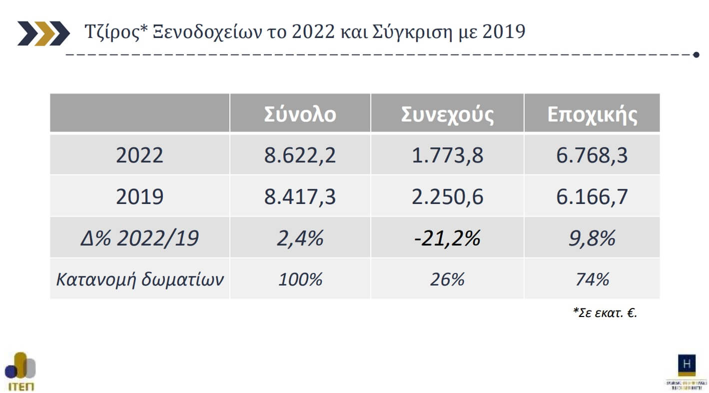 – Ο συνολικός τζίρος των ξενοδοχείων το 2022 ήταν οριακά αυξημένος σε σχέση με το 2019.
