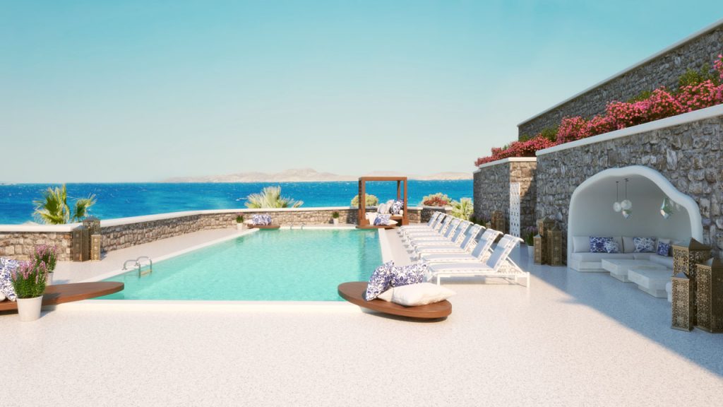 Ανοίγει την 1η Ιουνίου στην παραλία του Αγίου Ιωάννη στη Μύκονο, το Katikies Mykonos (φωτορεαλιστικές απεικονίσεις) το νέο «μέλος» του ομίλου ξενοδοχείων Katikies Resorts & Club.