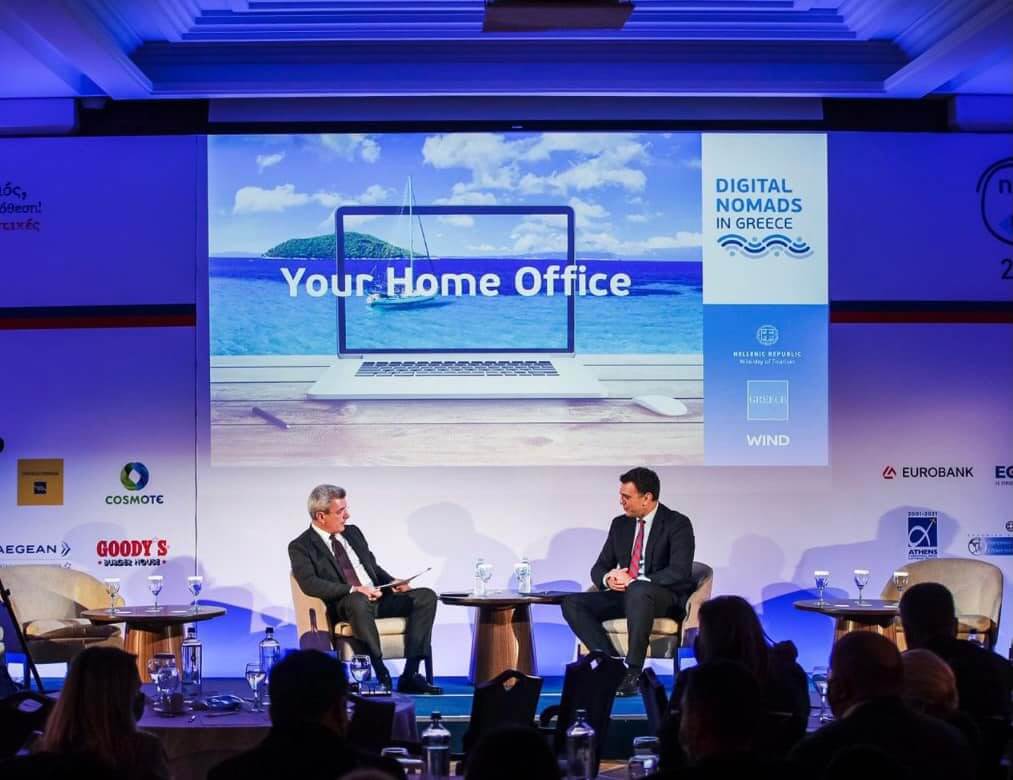 «Αρκετοί επισκέπτες έμειναν το χειμώνα στα νησιά μας ή σε άλλους προορισμούς και δούλεψαν εξ’ αποστάσεως μέσα από τον υπολογιστή τους. Αυτό είναι ένα παγκόσμιο trend, οι Digital Nomads ή Ψηφιακοί Νομάδες. Είναι ένα κομμάτι της πίτας που θα θέλαμε στη χώρα, καθώς ενισχύει κατά κύριο λόγο τον off – season τουρισμό», τόνισε ο Υπουργός Τουρισμού.