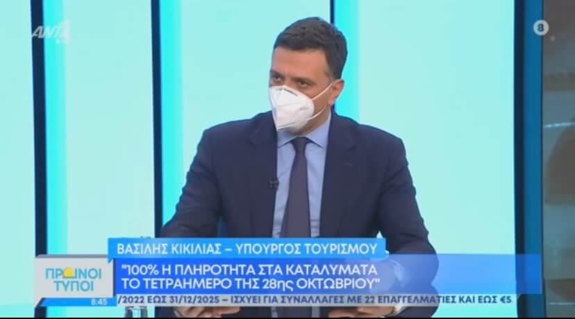 Ο Υπουργός Τουρισμού Βασίλης Κικίλιας παραχώρησε συνεντεύξεις στο ραδιοφωνικό σταθμό ΣΚΑΙ 1003, στην εκπομπή «ΠΡΩΙΝΟΙ ΤΥΠΟΙ» του Ant1 και στο Αθηναϊκό – Μακεδονικό Πρακτορείο Ειδήσεων (ΑΠΕ).