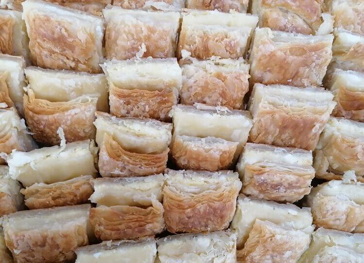 Η γεύση της πίτας είναι ιδιαίτερη απαλή και λεπτή, καθώς τα υλικά της προέρχονται από τους κήπους και τα μποστάνια των ντόπιων καλλιεργητών: Εξαιρετικό σπιτικό φύλλο ανοιγμένο με extra παρθένο αθωνικό ελαιόλαδο, καθώς και ντόπια κολοκύθα με ζάχαρη – χωρίς προσθήκες μπαχαρικών ή άλλων ουσιών, που αλλοιώνουν την αυθεντική γεύση.