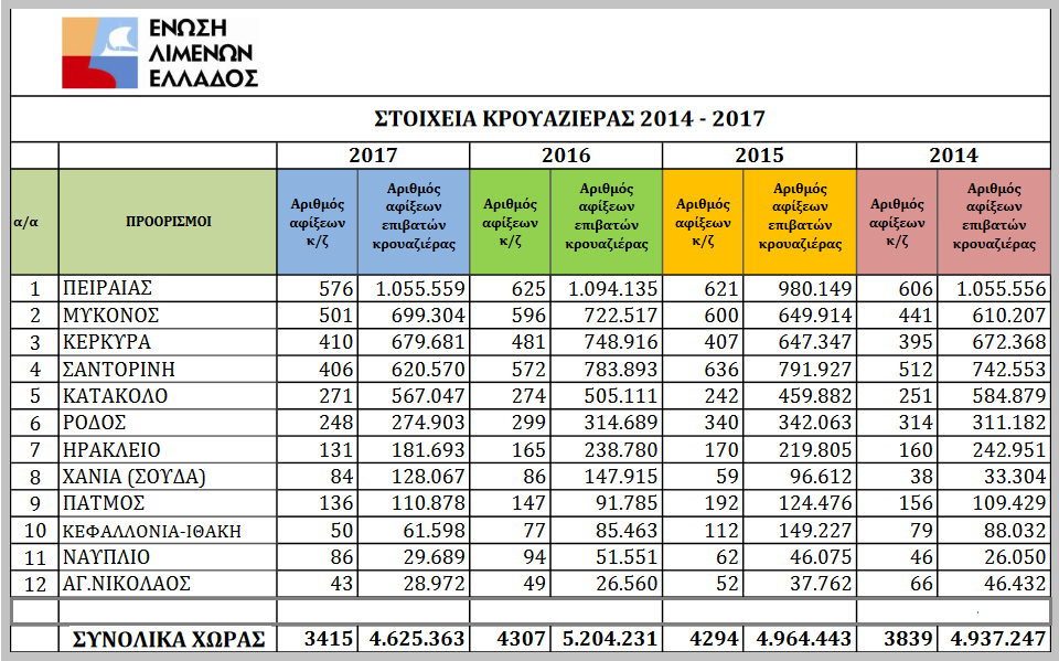 Δείτε ΕΔΩ τα συνολικά στατιστικά στοιχεία της κρουαζιέρας 2014 – 2017 για την Ελλάδα.