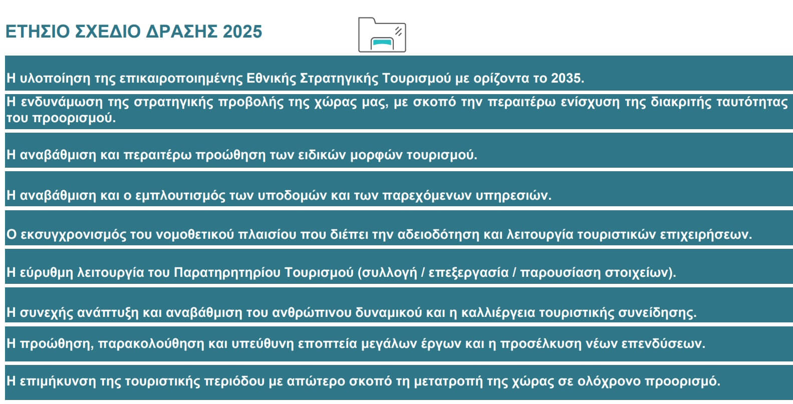 Η υλοποίηση της επικαιροποιημένης Εθνικής Στρατηγικής Τουρισμού 2035.