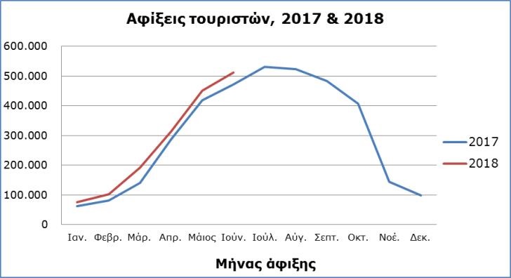 Συνολικά την περίοδο Ιανουαρίου – Ιουνίου 2018 οι αφίξεις τουριστών στην Κύπρο ανήλθαν σε 1.645.149 σε σύγκριση με 1.463.206 την αντίστοιχη περίοδο του 2017, σημειώνοντας αύξηση 12,4%, αλλά και ξεπερνώντας τις αφίξεις που καταγράφηκαν ποτέ στην Κύπρο κατά τους πρώτους έξι μήνες του έτους.
