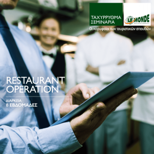 Το Restaurant Operation, που ξεκινάει τη Δευτέρα 17 Φεβρουαρίου 2020 στον εκπαιδευτικό όμιλο LE MONDE, είναι ένα εργαστηριακό πρόγραμμα εκπαίδευσης που εστιάζει στην πραγματική λειτουργία μιας επισιτιστικής επιχείρησης.