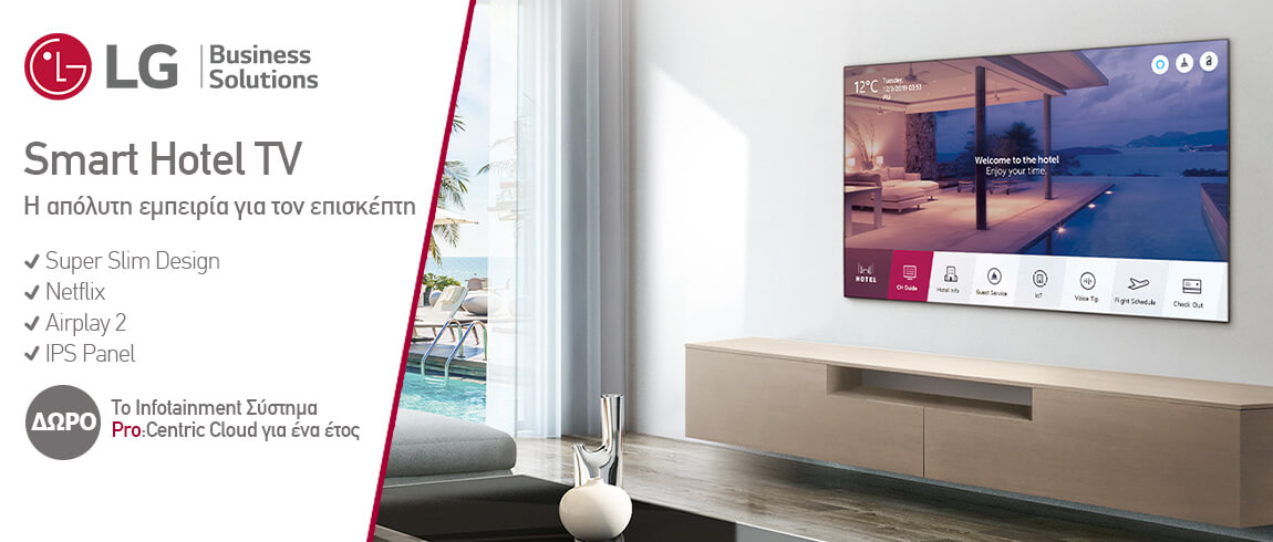 Η LG προσφέρει στα ξενοδοχεία την ευκαιρία να επωφεληθούν από μία προσφορά περιορισμένης διάρκειας και να βελτιώσουν την εμπειρία των επισκεπτών τους με τις LG Smart Hotel TVs και την πλατφόρμα Pro:Centric Cloud.