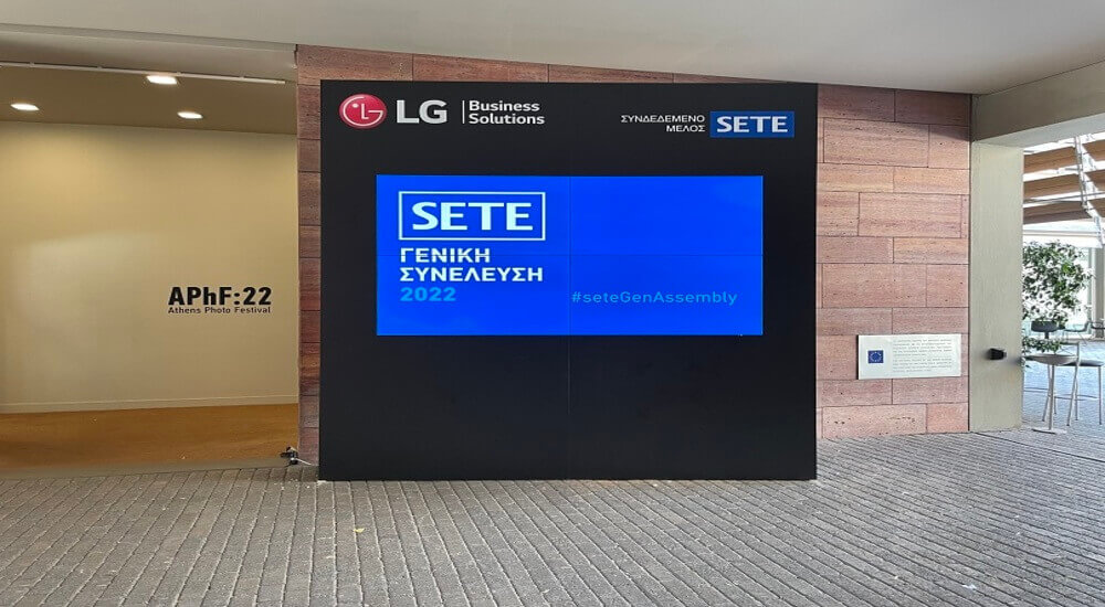 Το τμήμα LG Business Solutions υποστήριξε τη διοργάνωση παρέχοντας επαγγελματικές οθόνες στους χώρους διεξαγωγής της Γενικής Συνέλευσης, στο Μουσείο Μπενάκη Πειραιώς, προβάλλοντας τις ομιλίες που διεξάγονταν στη εκδήλωση καθώς και όλους τους χορηγούς της εκδήλωσης του ΣΕΤΕ.