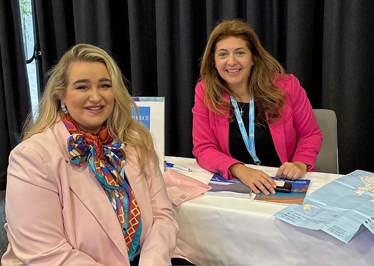 Φωτογραφία: Αριστερά η Ιρλανδή influencer και ιστορικός, νικήτρια του Βραβείου «A Pleasure to work with» Laura Fitzachary @seekthehistoric και η Προϊσταμένη της Υπηρεσίας ΕΟΤ Ην. Βασιλείου & Ιρλανδίας Ελένη Σκαρβέλη.