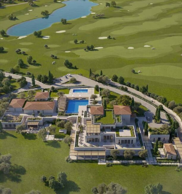 Στην πρώτη φάση των έργων θα δημιουργηθούν το γήπεδο golf και οι 260 golf residences και στη δεύτερη φάση το ξενοδοχείο και οι 88 βίλες.