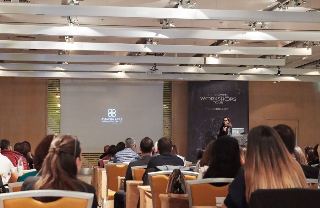 Το workshop ξεκίνησε με το Ζένιο Ζένιου (Upselling Hotel) να αναδεικνύει τη σημασία του στρατηγικά προδιαγεγραμμένου Ξενοδοχειακού Concept, στοιχείο που λείπει από τα περισσότερα ξενοδοχεία. Στη συνέχεια, η Μαρία Σφυράκη (ATN Constructions), υπογράμμισε το διαχωρισμό του Design Concept και παρουσίασε τα στάδια ανάπτυξης ενός ξενοδοχείου, σε σχέση με την αρχιτεκτονική και interior μελέτη.