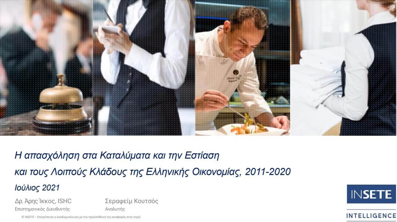 Σύμφωνα με τη νέα μελέτη του Ινστιτούτου του Συνδέσμου Ελληνικών Τουριστικών Επιχειρήσεων (ΙΝΣΕΤΕ) με θέμα: «Η απασχόληση στα Καταλύματα και την Εστίαση και τους Λοιπούς Κλάδους της Ελληνικής Οικονομίας, 2011 – 2020», παρόλη τη σημαντική μείωση που σημείωσαν τα τουριστικά μεγέθη της Ελλάδας λόγω της πανδημίας, η απασχόληση στις δραστηριότητες υπηρεσιών παροχής καταλύματος και εστίασης υποχώρησε συγκριτικά λιγότερο (-10%, από 381.900 το 2019 σε 343.600 το 2020) ως επακόλουθο πρωτοβουλιών και μέτρων που ελήφθησαν από το κράτος για τη στήριξη της απασχόλησης και των επιχειρήσεων.