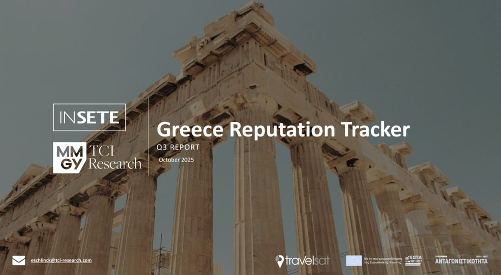 Τα παραπάνω είναι τα σημαντικότερα συμπεράσματα της νέας έρευνας του Ινστιτούτου του Συνδέσμου Ελληνικών Τουριστικών Επιχειρήσεων (ΙΝΣΕΤΕ), για τη φήμη της Ελλάδας και της κάθε Περιφέρειας στα κοινωνικά δίκτυα και τις ιστοσελίδες ταξιδιών το τρίτο τρίμηνο του 2025 (Q3 2025: Ιούλιος – Σεπτέμβριος).
