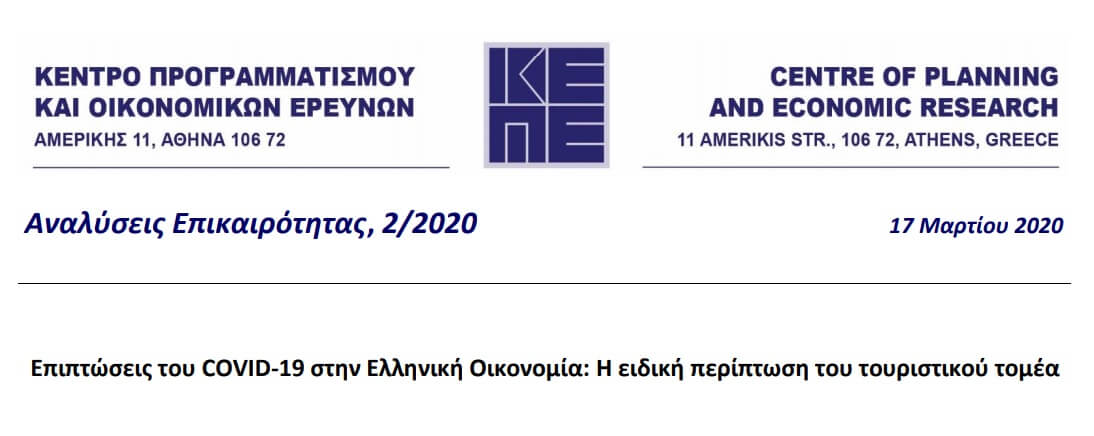 Μελέτη ΚΕΠΕ: Επιπτώσεις του COVID-19 στην ελληνική οικονομία – Η ειδική περίπτωση του τουριστικού τομέα