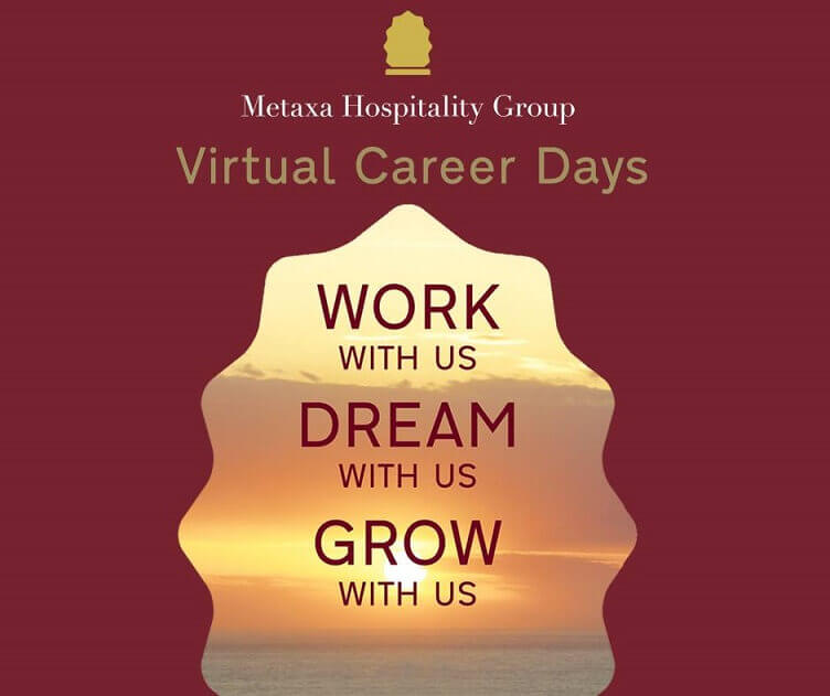 Ο ξενοδοχειακός όμιλος Metaxa Hospitality Group, που διαθέτει το 5άστερο Creta Maris Beach Resort στη Χερσόνησο του Ηρακλείου, το 5άστερο TUI Magic Life Candia Maris στην Αμμουδάρα του Ηρακλείου και το 5άστερο Santo Maris Oia Luxury Suites & Spa, στην Οία της Σαντορίνης και σχεδιάζει τη δημιουργία άλλων δύο ξενοδοχειακών συγκροτημάτων στη Σαντορίνη και στο Καβούσι της Ιεράπετρας του νομού Λασιθίου της Κρήτης, πρωτοπορεί μέσα στις δυσκολίες των συνθηκών, λόγω της πανδημίας και του lockdown και οργανώνει VIRTUAL CAREER DAYS.