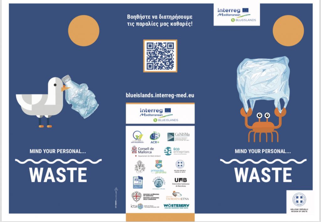 Στην κορύφωση της τουριστικής σεζόν ξεκίνησε η καμπάνια «Mind your personal waste» του ευρωπαϊκού έργου BLUEISLANDS – Interreg Med για την πρόληψη αποβλήτων, την προστασία των ακτών και θαλασσών, την αποφυγή μίας χρήσης πλαστικών και ανεξέλεγκτης απόρριψης αποτσίγαρων.