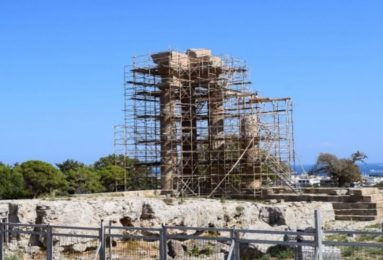​Σε εξέλιξη βρίσκεται το έργο της αποκατάστασης του ναού του Πυθίου Απόλλωνα, στην αρχαία ακρόπολη της Ρόδου (Μόντε Σμιθ) από