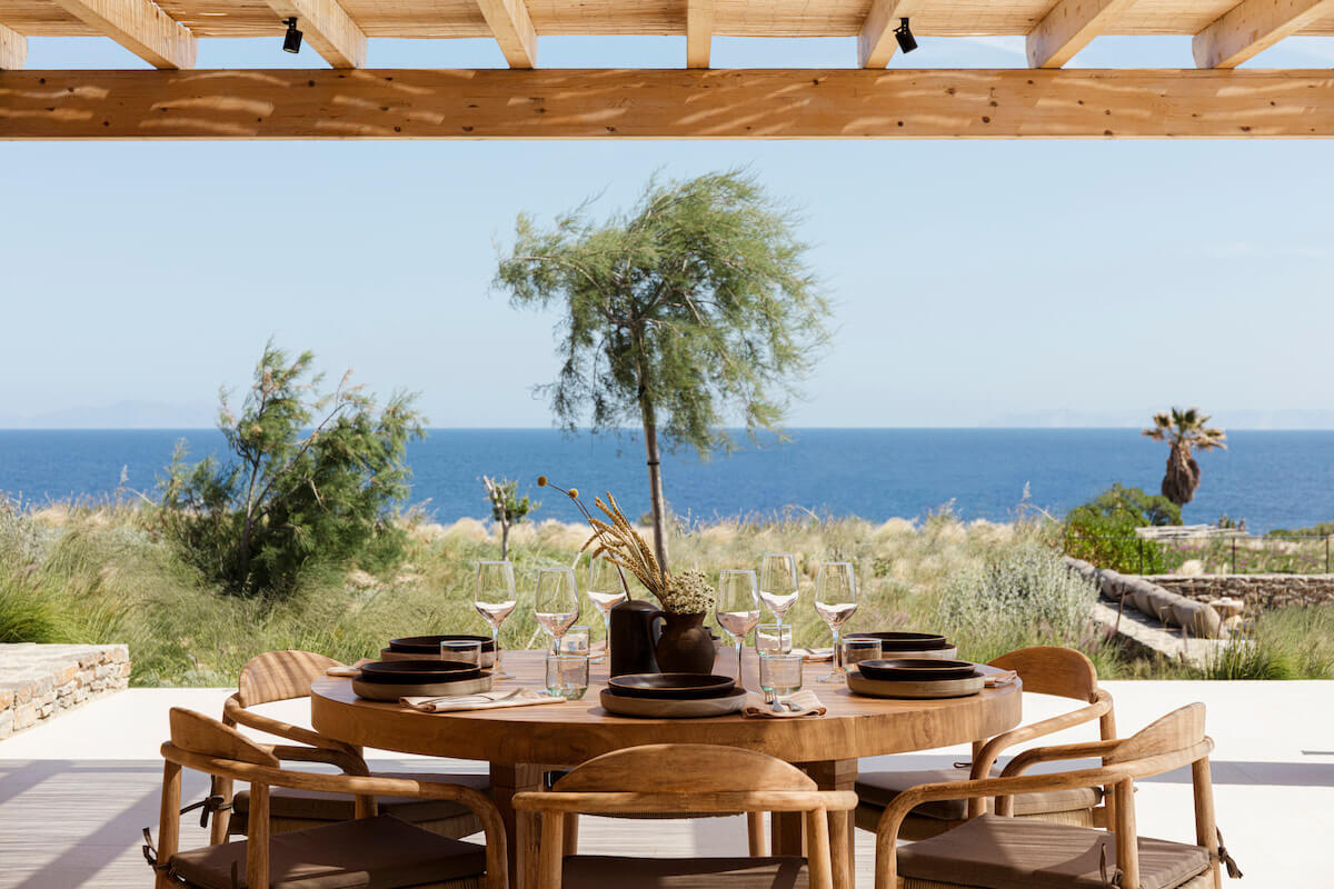 Θεματοφύλακας της ανεπιτήδευτης φινέτσας και της παράδοσης του νησιού, το συγκρότημα μοιάζει με φυσική προέκταση – συνοπτική περίληψη του απαράμιλλου φυσικού τοπίου: φωτεινά και ευρύχωρα εσωτερικά, που ξεκινούν και καταλήγουν σε απομονωμένες αυλές, βεράντες και μπαλκόνια, ενώνουν με μοναδική λεπτότητα και ευγένεια το μέσα με το έξω, το τότε με το τώρα.
