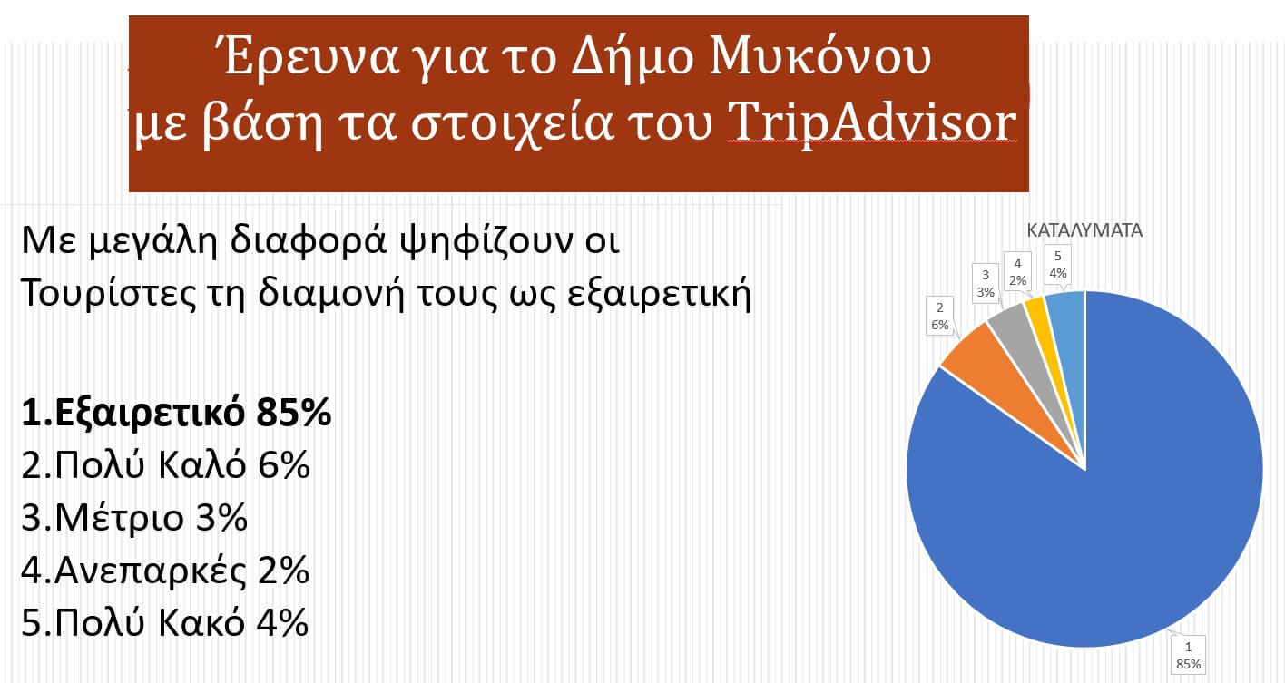 Απόλυτη ικανοποίηση και μάλιστα με συντριπτικά ποσοστά καταγράφεται από τους επισκέπτες της Μυκόνου σύμφωνα με μελέτη – αποκωδικοποίηση σχολίων μέσω Trip Advisor που έκανε η MTC GROUP για λογαριασμό του Δήμου του νησιού.