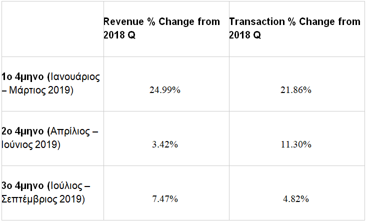 • Όλα τα παραπάνω στοιχεία αφορούν το 9μηνο Ιανουάριος – Σεπτέμβριος 2019.