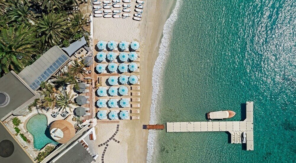 Η Distinction Resorts εξαγόρασε το 2022 το πολυτελές Kensho Psarou, που βρίσκεται στη φημισμένη παραλία Ψαρού της Μυκόνου. Το πρώην Κensho Psarou μετονομάστηκε N Hotel Mykonos (φωτογραφία).