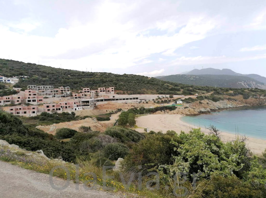Προχωράει η κατασκευή του 5άστερου resort σε έκταση 54,2 στρεμμάτων στη θέση «Χερόμυλος» στις Πετριές της νότιας Εύβοιας, ακριβώς δίπλα στην όμορφη παραλία.