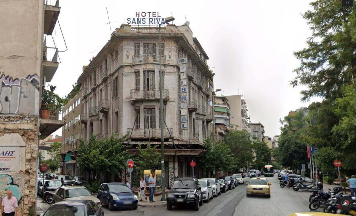 Πρόκειται για παλιό ξενοδοχείο («Sans Rival»), που βρίσκεται στην οδό Λιοσίων 11, απέναντι από το κτήριο που στεγάζει υπηρεσίες του δήμου Αθηναίων (Λιοσίων 22).