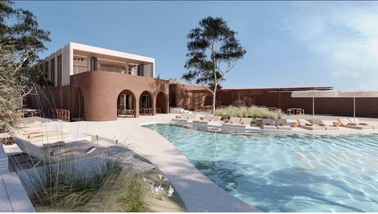 Πρόκειται για το Nissos Dunes Resort (φωτορεαλιστικές απεικονίσεις), του οποίου η Μελέτη Περιβαλλοντικών Επιπτώσεων (ΜΠΕ) τέθηκε το Δεκέμβριο του 2025 σε δημόσια διαβούλευση.