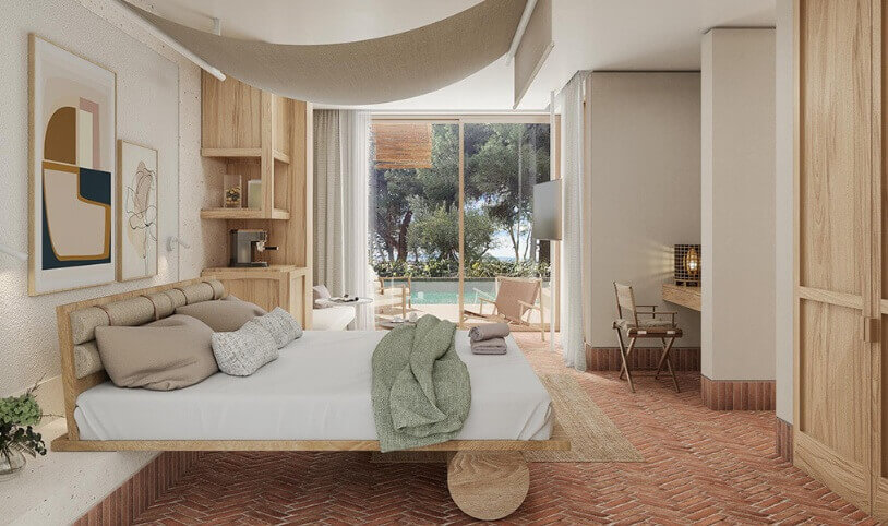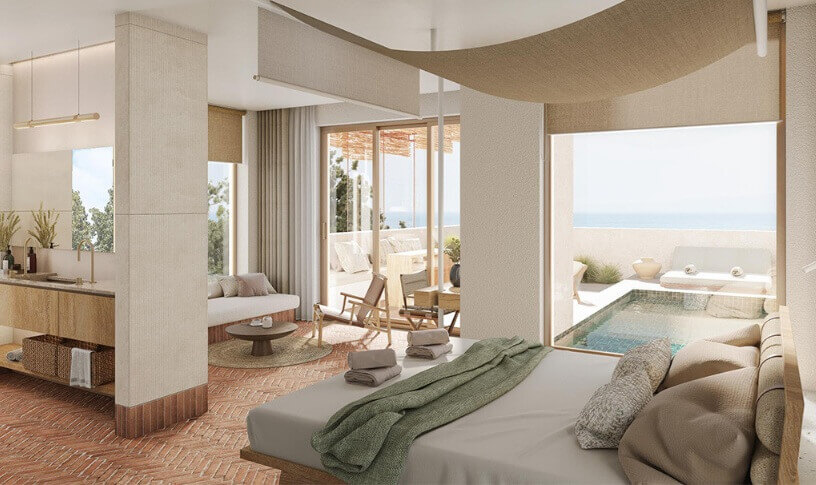 Το νέο resort θα διαθέτει 53 σουίτες, 35 – 65 τ.μ. η κάθε μία, με μικρή πισίνα – plunge pool ή απευθείας πρόσβαση σε μεγάλη πισίνα – lagoon pool, σε 10 κτήρια αποτελούμενα από ισόγειο και όροφο, κεντρικό κτήριο με χώρο υποδοχής και υπόγειο κέντρο ευεξίας, δύο εστιατόρια, δύο εξωτερικές πισίνες (lagoon και main pool), pool bar, θέσεις στάθμευσης κ.ά.