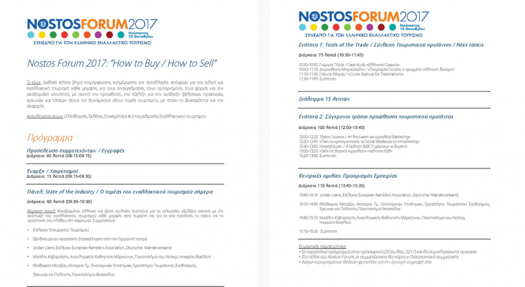 Για 2η συνεχόμενη χρονιά, 13 – 16 Οκτωβρίου, θα πραγματοποιηθεί στη Ναύπακτο η NOSTOS 2017: Έκθεση & forum για τον ελληνικό εναλλακτικό τουρισμό.