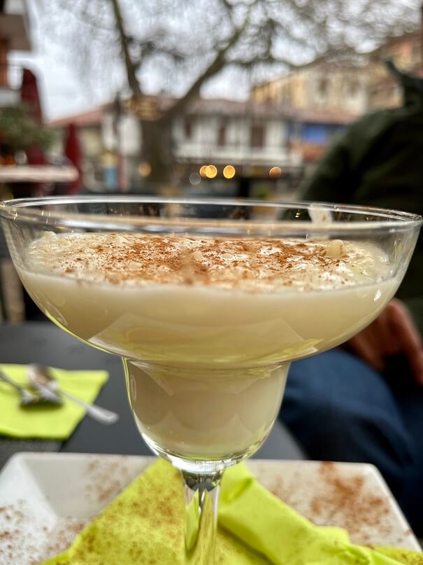 – Ρυζόγαλο με οινολάσπη θα απολαύσετε στο Bistrot της Ελένης στην πλατεία της Αρναίας.
