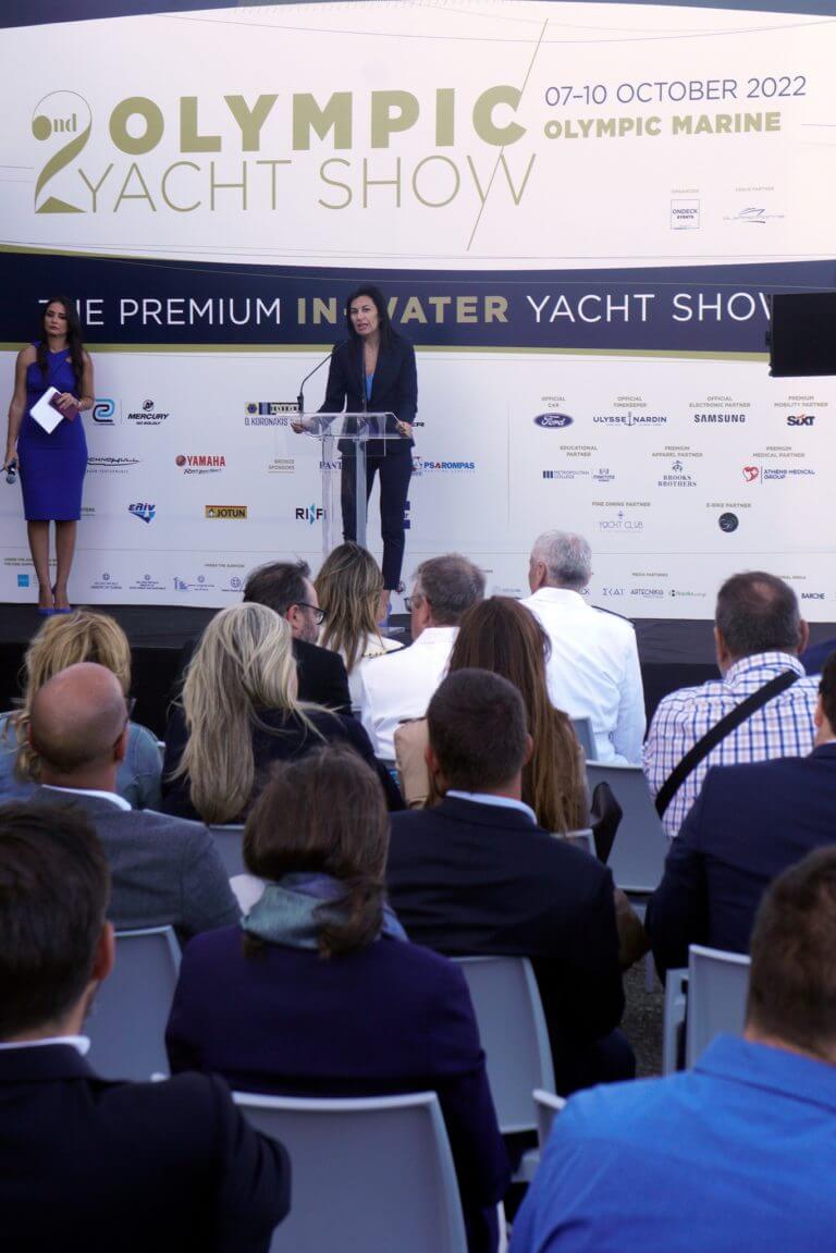 Συγκεκριμένα η Γενική Γραμματέας Τουριστικής Πολιτικής και Ανάπτυξης επισήμανε ότι «το Olympic Yacht Show 2022, μια πύλη προς το πιο όμορφο νησιωτικό σύμπλεγμα του κόσμου, συγκεντρώνει το ενδιαφέρον της παγκόσμιας κοινότητας, τοποθετώντας τη χώρα μας ψηλά στο χάρτη των διεθνών διοργανώσεων καθώς κορυφαία ναυπηγεία επέλεξαν να παρουσιάσουν για πρώτη φορά τις νέες τους δημιουργίες στη χώρα μας, γεγονός που μεταφέρει τη δυναμική του event και της αγοράς».