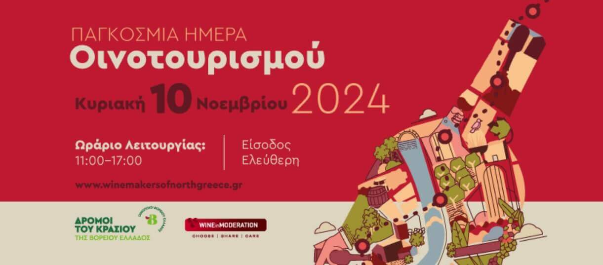 Την Κυριακή 10 Νοεμβρίου 26 οινοποιεία των «Δρόμων του Κρασιού της Βορείου Ελλάδος» συμμετέχουν στην παγκόσμια γιορτή του οινοτουρισμού και προσκαλούν τις φίλες και τους φίλους του κρασιού για οινο-ξεναγήσεις και οινο-γευσίες στους χώρους παραγωγής των εξαίρετων οίνων που δημιουργούν.