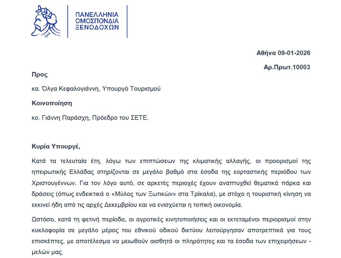 Είναι, επίσης, σαφές ότι οι παρατεταμένες αυτές συνθήκες προκάλεσαν στα μέλη μας, όπως και σε επιχειρήσεις άλλων κλάδων της οικονομίας, σημαντική οικονομική ζημία και υποχρέωσαν πολλούς επισκέπτες μας να ακυρώσουν τις διακοπές που είχαν προγραμματίσει, ενώ υπέβαλαν όσους επέλεξαν τελικά να ταξιδέψουν σε μια μεγάλη ταλαιπωρία.
