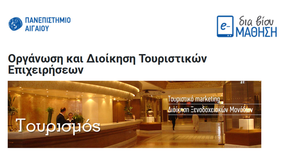 Πρόγραμμα e-learning στην Οργάνωση και Διοίκηση Τουριστικών Επιχειρήσεων υλοποιεί το Πανεπιστήμιο Αιγαίου.