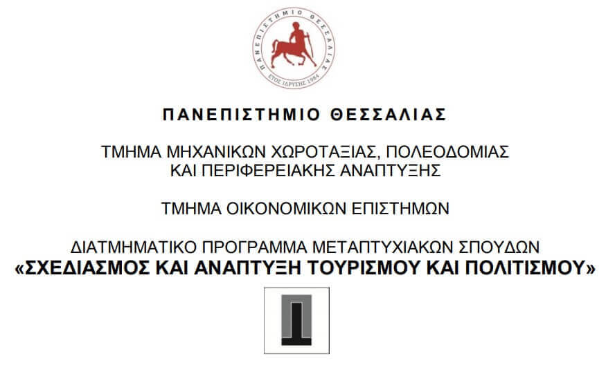 Το Τμήμα Μηχανικών Χωροταξίας, Πολεοδομίας και Περιφερειακής Ανάπτυξης και το Τμήμα Οικονομικών Επιστημών του Πανεπιστημίου Θεσσαλίας καλoύν τους ενδιαφερόμενους να υποβάλουν υποψηφιότητα για την παρακολούθηση του Διατμηματικού Προγράμματος Μεταπτυχιακών Σπουδών (ΔΠΜΣ) «Σχεδιασμός και Ανάπτυξη Τουρισμού και Πολιτισμού» (ΣΑΤΠ) για το ακαδημαϊκό έτος 2021 – 2022.