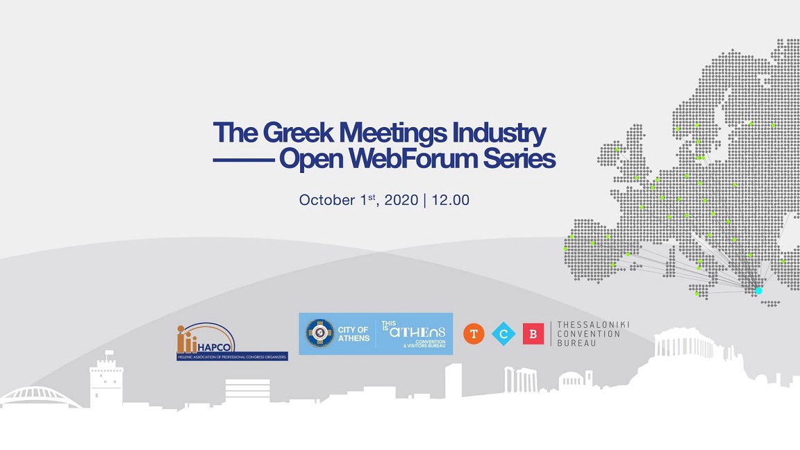 Σήμερα Πέμπτη 1 Οκτωβρίου (12.00 – 13.30), θα πραγματοποιηθεί διαδικτυακό WebForum Series, που θα αφορά την παρουσίαση αποτελεσμάτων της πρώτης πανελλαδικής έρευνας αναφορικά με τις επιπτώσεις της πανδημίας στην εγχώρια αγορά συνεδρίων και εκδηλώσεων.