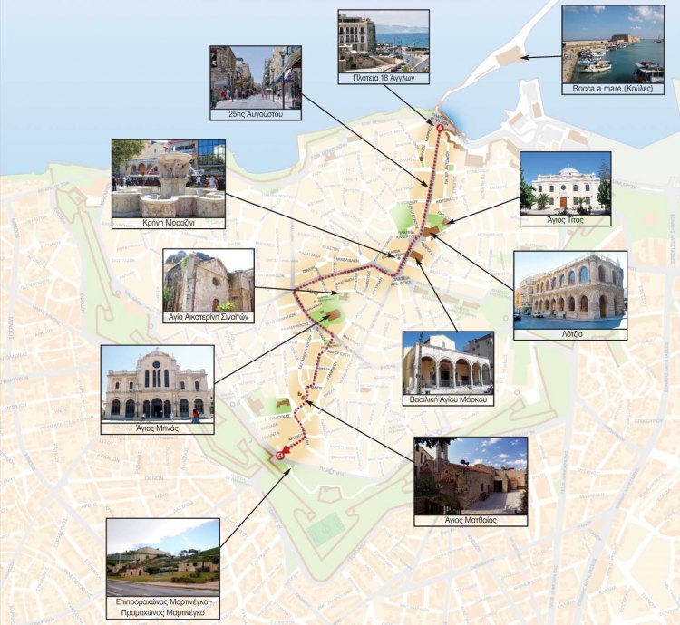 Μέσα από πέντε διαφορετικές πολιτιστικές διαδρομές που ετοιμάζεται να δημοπρατήσει μέσα στον Αύγουστο ο δήμος του Ηρακλείου της Κρήτης θα μπορεί να «ταξιδέψει» τους δημότες και τους επισκέπτες του στον ιστορικό ιστό του, ώστε να γνωρίσουν τη ζωντανή ιστορία του, όπως αυτή σώζεται μέσα από το μνημειακό και το αξιόλογο αρχιτεκτονικά απόθεμα των κτηρίων του.