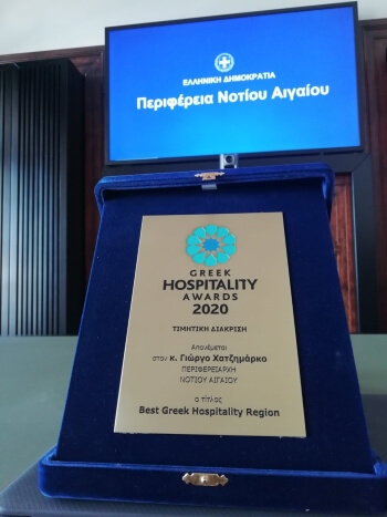 Την τιμητική διάκριση «Best Greek Hospitality Region 2020» κέρδισε η Περιφέρεια Νοτίου Αιγαίου κατά την τελετή Απονομής των βραβείων Greek Hospitality Awards 2020, που πραγματοποιήθηκε στις 6 Οκτωβρίου, μέσω πλατφόρμας ψηφιακών εκδηλώσεων.