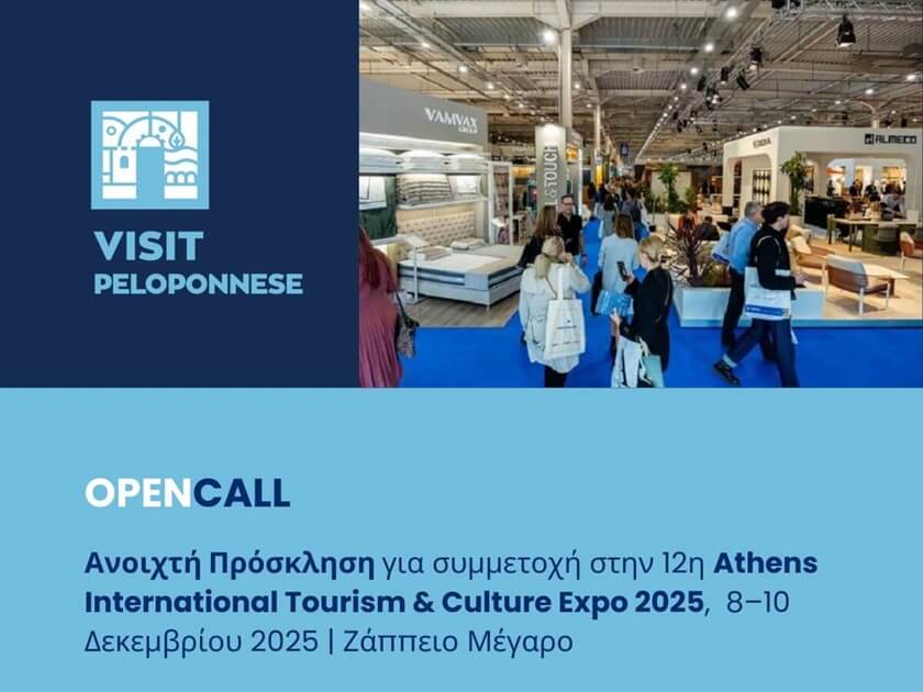 Η Περιφέρεια Πελοποννήσου πρόκειται να συμμετάσχει στην 12η Athens International Tourism & Culture Expo 2025, η οποία θα πραγματοποιηθεί στο Ζάππειο Μέγαρο από τις 8 έως τις 10 Δεκεμβρίου και απευθύνει ανοιχτή πρόσκληση προς τουριστικούς φορείς και επαγγελματίες της Πελοποννήσου που επιθυμούν να λάβουν μέρος ως συνεκθέτες.