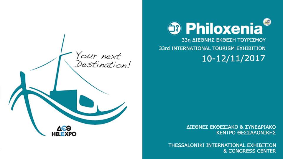 Η 33η διεθνής έκθεση τουρισμού Philoxenia, η σημαντικότερη τουριστική έκθεση της χώρας, υποδέχεται επαγγελματίες και κοινό στις 10 – 12 Νοεμβρίου 2017, στο Διεθνές Εκθεσιακό & Συνεδριακό Κέντρο Θεσσαλονίκης, παράλληλα με τη διεθνή έκθεση ξενοδοχειακού και επαγγελματικού εξοπλισμού, Hotelia.