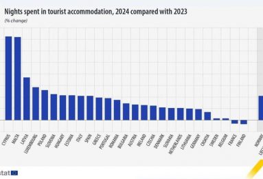 Τη μεγαλύτερη αύξηση στις διανυκτερεύσεις σε τουριστικά καταλύματα σε ολόκληρη την Ε.Ε. για το 2024 σε σχέση με το 2023,