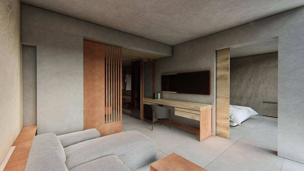 Αξίζει να σημειωθεί ότι ο αρχιτέκτονας και ο interior designer του ξενοδοχείου «εμπνεύστηκαν» το σχεδιασμό του από τα ευρήματα των ρωμαϊκών χρόνων (2ος αιώνας μ.Χ.) που βρέθηκαν στην έκταση του Pilot Amphora.